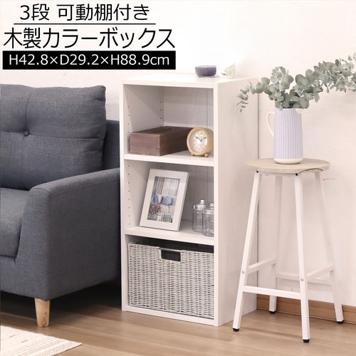 エイ・アイ・エス 可動棚カラーボックス3段 MBシリーズ 幅42.8cm 簡単組立 ホワイト MBS-03 WH