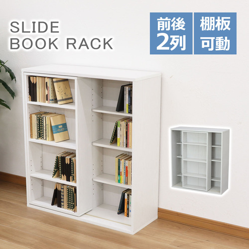 エイ・アイ・エス スライドブックラック 前後2列 幅80×奥行29.2×高さ88.9cm ホワイト CA-8981WH