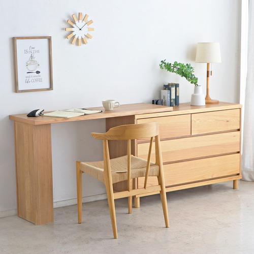 東馬(Tohma) ハウタ 120 伸長デスクチェスト 収納デスクセット 幅120×奥行40×高さ75cm ナチュラル