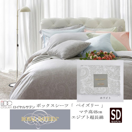 大塚家具 ボックスシーツ48 グランペイズリー WH EK [イースタンキング] 綿100% ホワイト