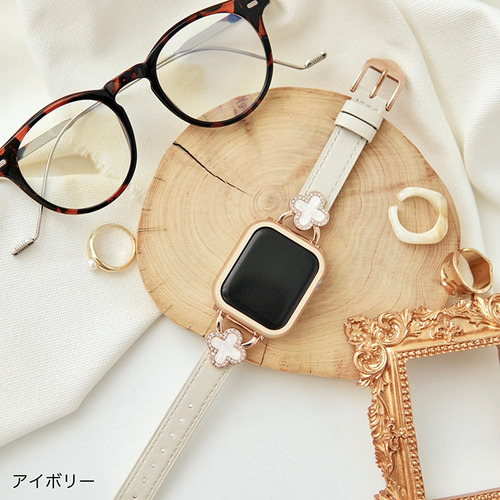 GAACAL W00502AA APPLE WATCH 1-11/SE1-3 38/40/41/42(10-11)MM クローバーモチーフバンド アイボリー
