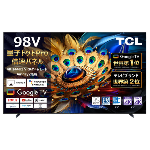 TCL 98C655 98V型 4K液晶テレビ BS・CS 4Kチューナー内蔵 YouTube対応
