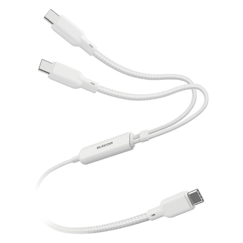 エレコム U2C-CCCA12WH USB-C 充電ケーブル USB Type-C 二股 2in1 140W PD急速充電 ナイロンメッシュ 1.2m ノートPC対応 ホワイト