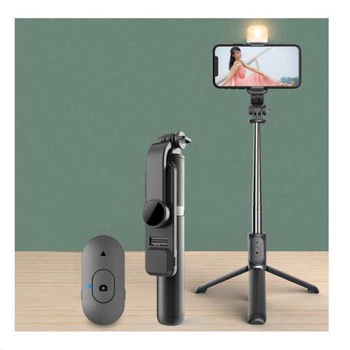 RM RM1859BK コンパクト三脚付き自撮り棒 美白LED搭載 360度回転 iPhone・Android対応リモコン付 ブラック