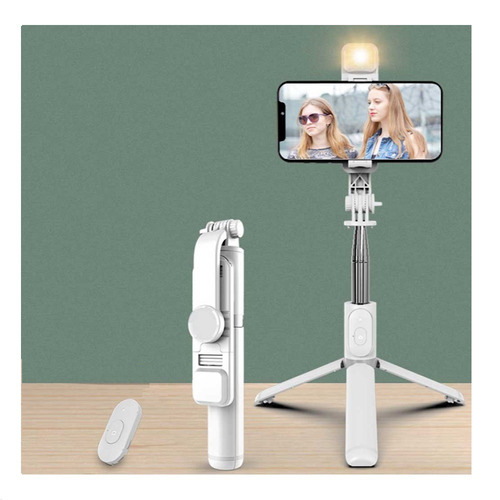 RM RM1859WH コンパクト三脚付き自撮り棒 美白LED搭載 360度回転 iPhone・Android対応リモコン付 ホワイト