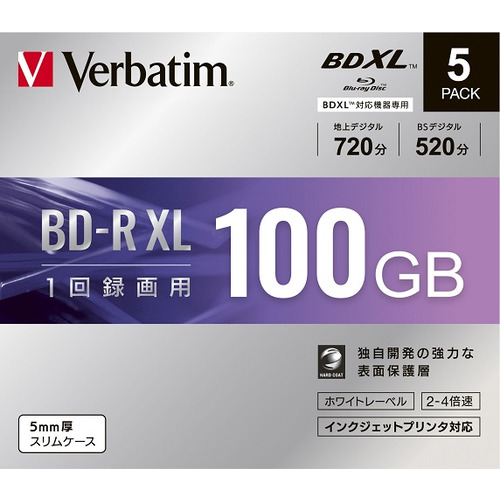 バーベイタム(Verbatim) VBR520YP5D1 録画用BD-RXL(片面3層)インクジェットプリンタ対応ワイドレーベル ケース付き5枚パック